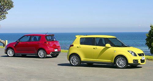 New models - Suzuki - Swift - SportSwift gets specialRally style: The Suzuki Swift RE4 gets extra goodies, including alloys, climate control air, foglights and spoiler. Suzuki releases two new special-edition Swifts, with both sport and safety in mind30 Jul 2009 TWO new special-edition Swifts are now available from Suzuki, offering the choice of either extra safety or style. Hot on the heels of the all-new Alto sub-light hatchback, which sets a new Australian price benchmark with a manufacturer’s list price of just $12,490 and is fitted as standard with six airbags, comes a safety pack for the light-sized Swift that also includes six airbags. Available for an extra $700 over the entry-level Swift’s $16,790 price-tag (plus statutory and dealer delivery costs), the Swift Safety Pack comprises front-side and side curtain airbags to the base model’s standard twin front airbags. Also powered by a 1.5-litre engine, the Swift S ($18,790) continues to feature six standard airbags, while the flagship Swift Sport ($24,490) also comes with electronic stability control – as does the flagship Alto GLX ($14,490). A four-speed automatic transmission adds $2000 to all prices. “Vehicle safety is increasingly becoming an important factor in the purchase decisions of customers and the addition of the Swift Safety Pack answers those concerns,” said Suzuki Australia general manager Tony Devers. “For just $700 extra, customers can have the added peace of mind that comes with six airbags.” From top: Suzuki Swift Sport airbags, Suzuki Swift Sport.The second Swift special-edition available from August 1 is the Swift RE4, which is claimed to offer $5500 of extra features for $18,290 (plus $2000 for the auto) – $1500 more than the base Swift’s price. The RE4 is said to be inspired by Suzuki’s domination of the Junior World Rally Championship and, on top of the Swift’s standard equipment list, adds new alloy wheels, keyless starting, foglights, climate-control air-conditioning, sports seats with Alcantara trim, side mirror indicators and a rear spoiler. “The Swift has truly been one of the great automotive success stories in recent years, with its mix of European styling, outstanding driving dynamics and fantastic value for money,” said Mr Devers. “In spite of a host of new competitors from around the globe, the Swift has cemented itself as one of the benchmark small cars in Australia and is one of the best selling cars in the market. “Given the sales performance of previous RE versions, customers wanting to take advantage of this outstanding value package are advised to get in early.” ![]() Read moreAll new modelsSwift pricing